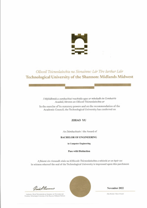 就业情况:近三届毕业生全部获得欧洲ECTS学分认证,20人获得爱方本科二等以上学士学位,其中8人顺利完成爱尔兰都柏林大学、英国谢菲尔德大学等世界知名高校硕士学习;15人考入省内本科院校,48人在长三角地区企业高质量就业,打通了国内就业、专转本学习、出国留学的多途径上升通道,服务学生全面发展。