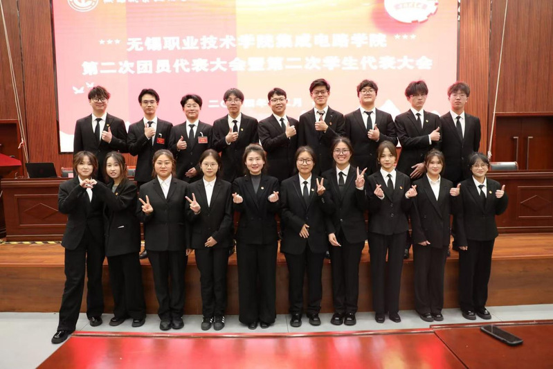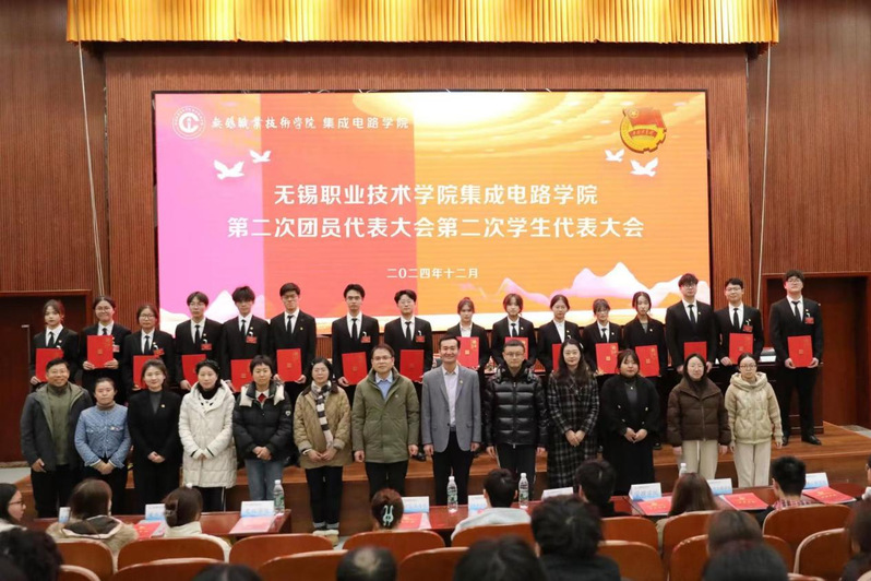 为了进一步加强共青团和学生会组织建设,落实团学组织改革的各项措施,保证团学工作的连续性和规范性,根据《无锡职业技术学院学生代表大会组织实施办法》《中国共产主义青年团章程》《中国共产主义青年团基层组织选举规则》的有关规定,结合分院实际,经学院党总支批准,集成电路学院团员代表大会暨第二次学生代表大会于2024年12月18日在国际交流中心一楼报告厅隆重召开,校团委副书记庞军,集成电路学院党总支书记吴斌,集成电路学院副院长黄从贵,集成电路学院分团委书记王祎,各兄弟院系分团委书记、集成电路学院全体辅导员和团员、学生代表共同参与本次会议。