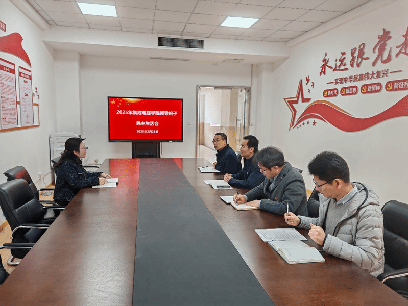 为深入贯彻落实党的二十届三中全会精神,进一步加强学院党政领导班子建设,2025年2月28日上午,集成电路学院党政班子民主生活会在学院会议室召开。学院党总支书记吴斌、院长蔡建军、副院长黄从贵、综合办吴孔培参加会议,副校长吴慧媛到会指导并作点评,会议由党总支书记吴斌主持。
