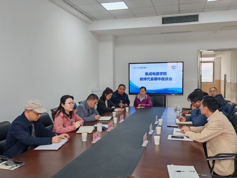 11月19日下午2:00,我院在图文中心B601召开了2024-2025-1学期教师座谈会。学校副校长吴慧媛,教务处副处长吴伟,质量控制与监督部科长马忠亮出席本次座谈会。集成电路学院党总支书记吴斌、副院长黄从贵、各系部办主任及教师代表参加了本次座谈会。会议由吴斌书记主持。