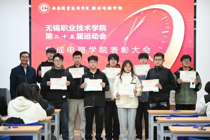 在无锡职业技术学院校第二十五届运动会中,集成电路学院的运动员奋勇争先,荣获学生团体总分第六,广播体操第一名。为表彰在第二十五届校运会上取得佳绩的运动员及辛苦付出的幕后工作人员,11月28日,集成电路学院在图B-608举行第二十五届校运会总结表彰大会,2023级和2024级运动员代表参加本次大会。