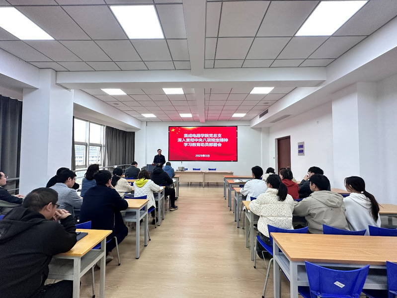 为积极响应党中央在全党开展深入贯彻中央八项规定精神学习教育的号召,3月28日下午,集成电路学院党总支召开深入贯彻中央八项规定精神学习教育动员部署会,党总支书记吴斌主持会议,全院师生党员参加会议。