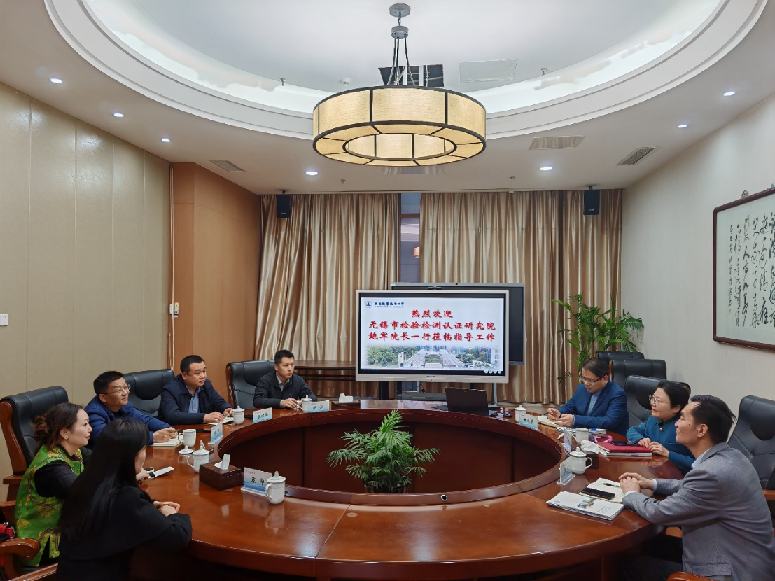 鲍军院长介绍了无锡市检验检测认证研究院在 “计量标准”“检测认证”“科研装备” 等领域的综合服务能力,以及打造一站式公共服务平台的发展定位。他表示,无锡职业技术大学在智能制造、集成电路等领域的专业优势与人才储备,与研究院服务区域产业转型升级的需求高度契合,尤其在技术标准联合研发、检验检测人才联合培养等方面具有广阔合作空间。